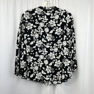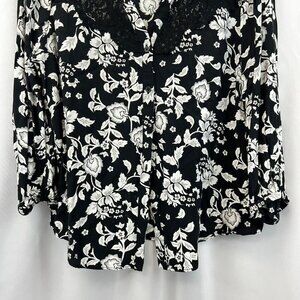 White House Black Market Floral Lace Button Up Top Black/Multi Size Large