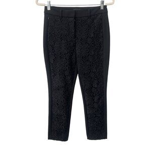 White House Black Market Floral Lace Slim Ankle Pant Women 4 Petite Black Career