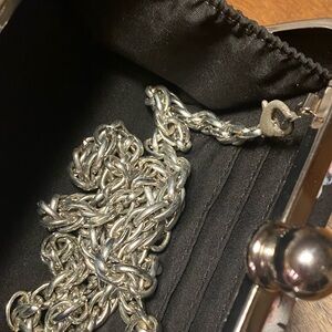 Chic clutch with floral design. Features a sleek clasp. Ideal for stylish evenings.