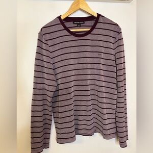 WHBM size large black mesh style stretch convertible dress that can be worn with a gray and pink floral pattern or a black and magenta floral pattern. Both ways have ruched sides for a flattering feminine fit. Excellent condition. Stock photos show dress on, not color pattern. (E)