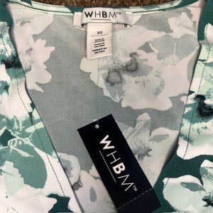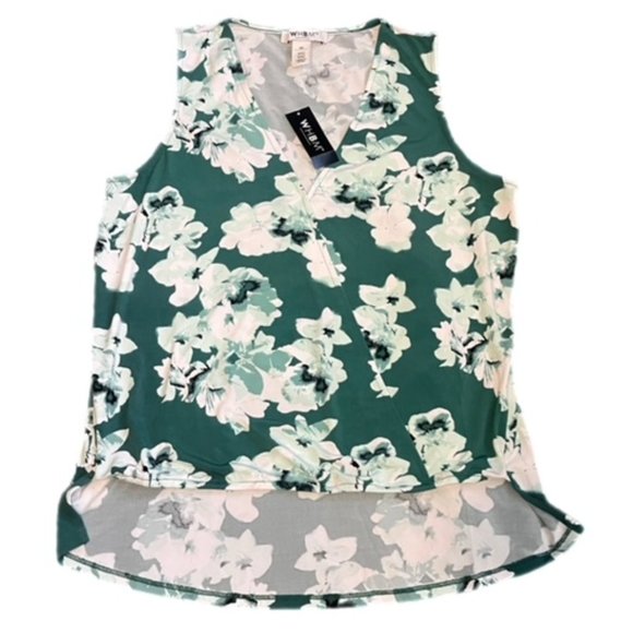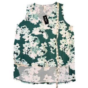 White House Black Market Floral Sleeveless Surplice Faux Wrap Hi Lo Green/White