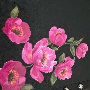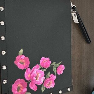 New With Tags (NWT) White House Black Market clutch/wristlet! This chic black bag features a vibrant pink floral design, adding a pop of color to any outfit. The studded trim provides an edgy detail, perfectly complementing the elegant floral print. It's the ideal accessory for a night out, a special occasion, or simply adding a touch of sophistication to your everyday look.