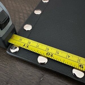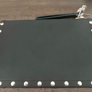 • Features: Studded trim, removable wrist strap, gold-tone hardware (if applicable), zipper closure, interior slip pocket (if applicable)