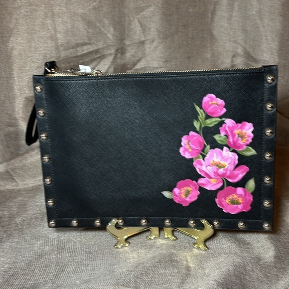 White House Black Market Floral Studded Pouch Bag Clutch Purse