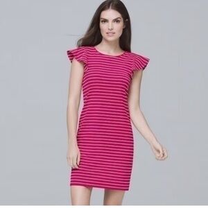 White House Black Market Flutter sleeve Pink Striped sheath Dress size small