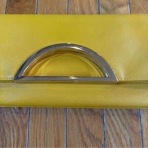 White House Black Market Foldover Clutch Purse Wristlet Half Moon Yellow Gold