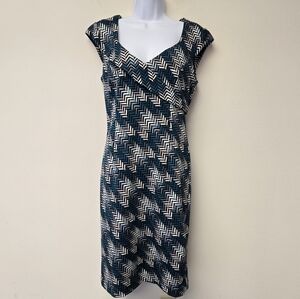 White House Black Market Geometric Chevron Sheath Dress Teal 10