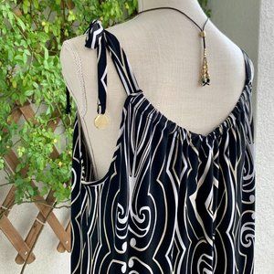 White House Black Market Geometric Sleeveless Black White Tan Shift Dres…