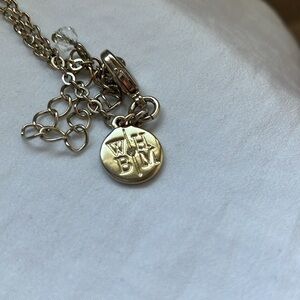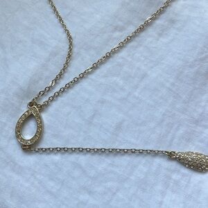 White House Black Market: Gold Tone Long Necklace- drapes