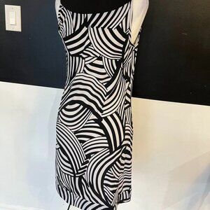 Bring on the bold! This White House Black Market sleeveless dress is giving major optical illusion energy—in the best way possible. Black and white swirls dance across a soft, stretchy fabric (95% polyester, 5% spandex) that moves with you, not against you. The black neckline keeps it chic, while the pockets keep it practical (because we all know dresses with pockets automatically win).
