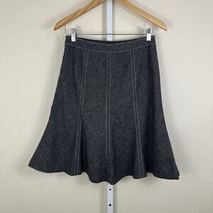 White House Black Market Gray A-Line Skirt Size 0 Contrast Stitching Y2K Preppy