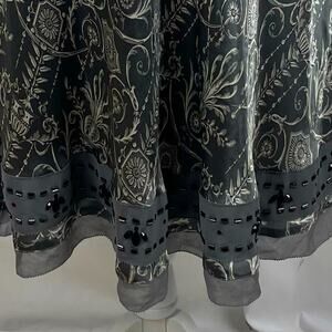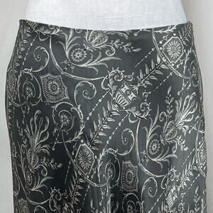 White House Black Market Gray Cream Paisley Pure Silk Beaded Skirt NWOT Size 4