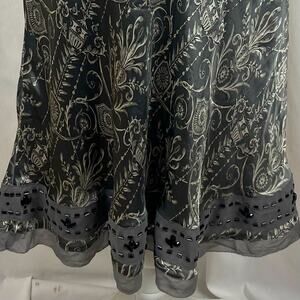 White House Black Market Gray Cream Paisley Pure Silk Beaded Skirt NWOT