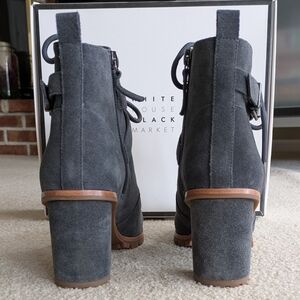 White House Black Market Gray Genuine Suede Combat Ankle Boots w/ Heel Size 7.5