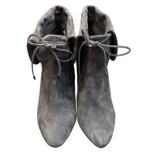 Gray Suede Britton Wedge Ankle Booties Size 9.5 Condition is wore a couple of times..Beautiful genuine suede/ leather bodies. They are in new condition. No scuffs, stains, rips or tears. Perfect for the fall Or Winter! Beautiful boots!!