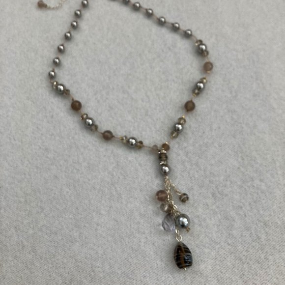 White House Black Market Gray/Crystal Bead Drop Necklace