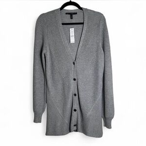 White House Black Market Grey Longline Cardigan Sweater, NWT, Size L