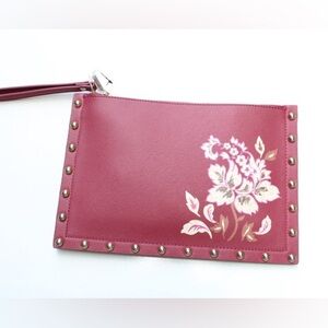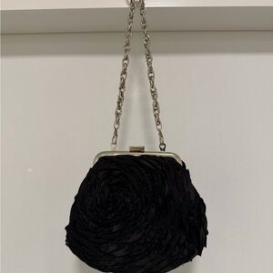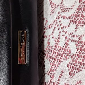 vegan black handbag Top zipper with FOB. Measures approx 13" wide X 6" High X 3-1/2 deep