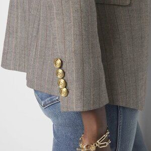 Our latest WHBM® Studio Blazer in herringbone ensures you’re wearing the season’s must-have hue. As always, strong shoulders give the blazer a look that's all business, with darts and an angled closure that shape the waist for a flattering feminine silhouette, accented with polished metal buttons. Wear it open or closed and match it back to the Luna Wide Leg Trouser or Vest for a complete look.
