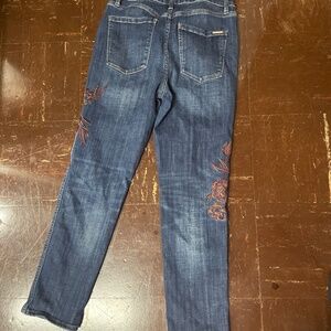 White House Black Market High Rise Straight Floral Embroidered Jeans