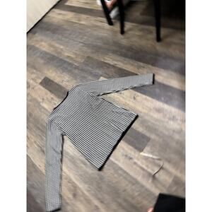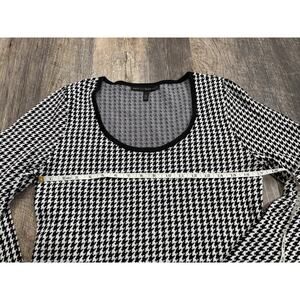 A stylish houndstooth sweater from White House Black Market, featuring a classic black and white pattern. This long-sleeve top is perfect for adding a touch of elegance to any outfit. It is a size large and in excellent used condition.