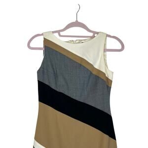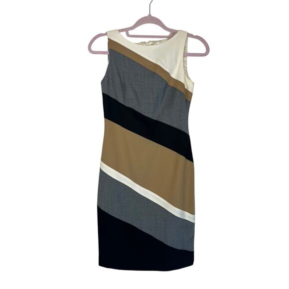 White House Black Market Ivory Brown Black Grey Stripe Sleeveless Dress Size 00