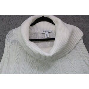 White House Black Market Ivory Cable Knit Poncho Sweater-Size S/M-Cowl Neck. Item is in Excellent Condition. Laying flat measuring the length it is 26-29''.