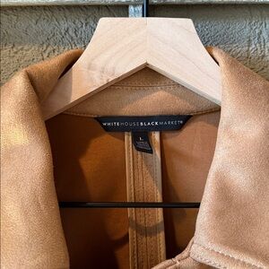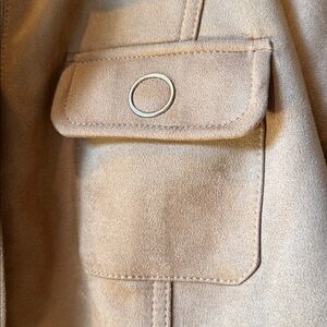 Excellent Used Condition- I wore this less than 10 times. It has minimal signs of wear. It is buttery soft microfiber faux suede like material. The gold detailed buttons and zipper are super classy. This is a perfect lightweight jacket for Fall π Please see pictures for details including measurements.