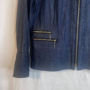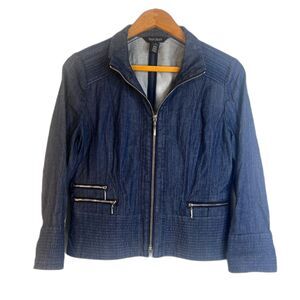 White House Black Market Jacket Full Zip Edgy Fitted Neutral Size 4 Classy Chic