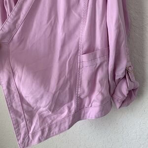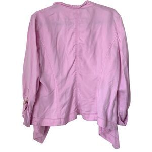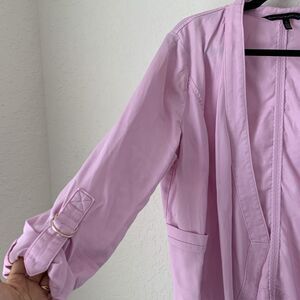 White House Black Market Jacket L Pink Collarless Open Drape Roll Tab Barbie