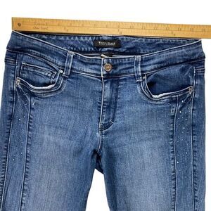 White House Black Market Jeans Womens 10 Blue Blanc Slim Crop Rhinestone Beads