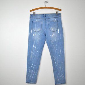 White House Black Market Mid Rise Girlfriend Skinny Jeans Paint Splash Size 8