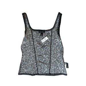 White House Black Market L Floral Corset Top With Lace Trim & Boning Detail 1846