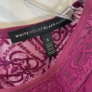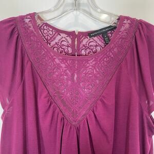 White House Black Market Lace Yoke Top Purple Flutter Short Sleeves S
