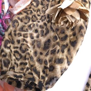 White House Black Market Leopard Print Gold Strip Sheer Dress Sz 4