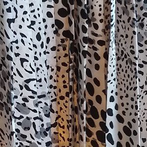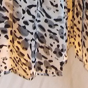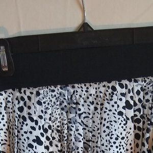 This gently used size 4 White House Black Market, black and white leopard print skirt, is fully lined and has pleating through the skirt. Side zip entry. Some wear on the elastic band, but otherwise in good condition. Check out the shoes in my closet to find the perfect match. Thank you for stopping by my closet.