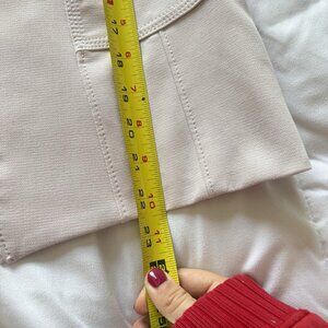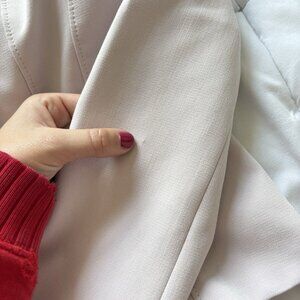 This White House Black Market light pink cropped blazer jacket in women's size small is a stylish and versatile addition to any wardrobe. Made from a comfortable cotton blend with a solid pattern, this short jacket features long sleeves, a zip closure, and a classic collar. Perfect for casual, workwear, or business occasions, this lightweight and lined jacket is designed for all seasons.
