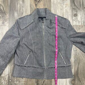 White House Black Market Linen Blend Jacket 16 Full Zip Pockets Gray Chambray