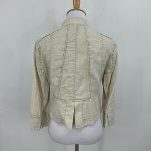 White House Black Market Linen Magician Blazer Size 8 Beige Open Front Cardigan