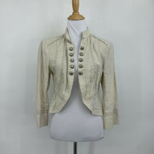WHITE HOUSE BLACK MARKET LINEN MAGICIAN BLAZER SIZE 8 BEIGE OPEN FRONT CARDIGAN