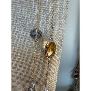 A versatile necklace featuring sparkling glass crystals and yellow accents. Convertible design allows for multiple styling options, perfect for layering.