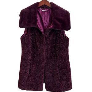 White House Black Market Long Faux Fur Vest in Cabernet Wine Red Size Medium