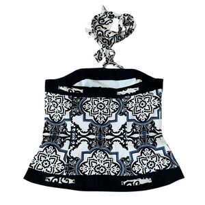 This chic tank top from White House Black Market showcases a striking black, white and blue design with ornate medallion-like patterns. The corset/bustier style offers a structured fit, making it a standout piece for any wardrobe. Perfect for adding a touch of elegance to your ensemble.Fully lined with hidden back zip closure