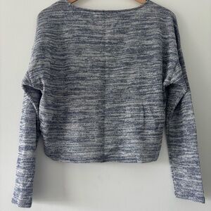White House Black Market Melange Blue and Gray Knit Rayon Blend Merled Top Small