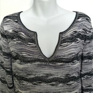 White House Black Market Metallic Knit V-Neck Sweater Womens Medium Long Holiday