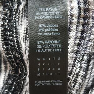 Add a touch of shimmer to your wardrobe with this White House Black Market metallic knit V-neck sweater. This women's size medium sweater features a stylish V-neck and a comfortable, long fit. Perfect for dressing up or down, this sweater is sure to become a favorite. Can be worn for holidays or formal events.