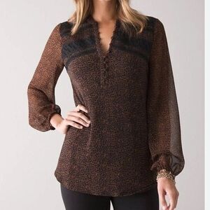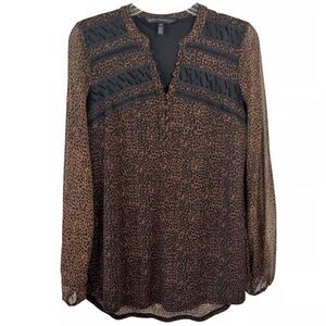 White House Black Market Micro Cheetah Whiskey Blouse MP Petite