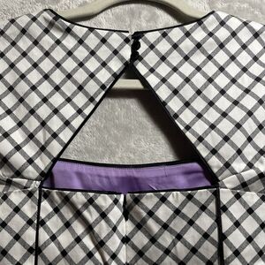 White House Black Market Modern Gingham Back Cutout Blouse Top Size 12