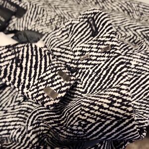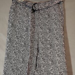 Sophisticated wide leg pants in black and white. Features a stylish tie belt. Perfect for versatile styling. Missing button, but you don't need. ÷)
