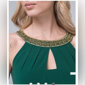 White House Black Market NWT Sz 14 emerald Instantly Slimming Beaded Nec…